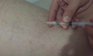 La escleroterapia o el borrar las arañitas venosas se realiza con soluciones que son irritantes para el trayecto venoso, es común que se tenga que utilizar una media