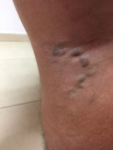 La insuficiencia venosa superficial es causada por la hipertensión en las venas debido a la incompetencia de las válvulas, esta es una fotografía de un paciente